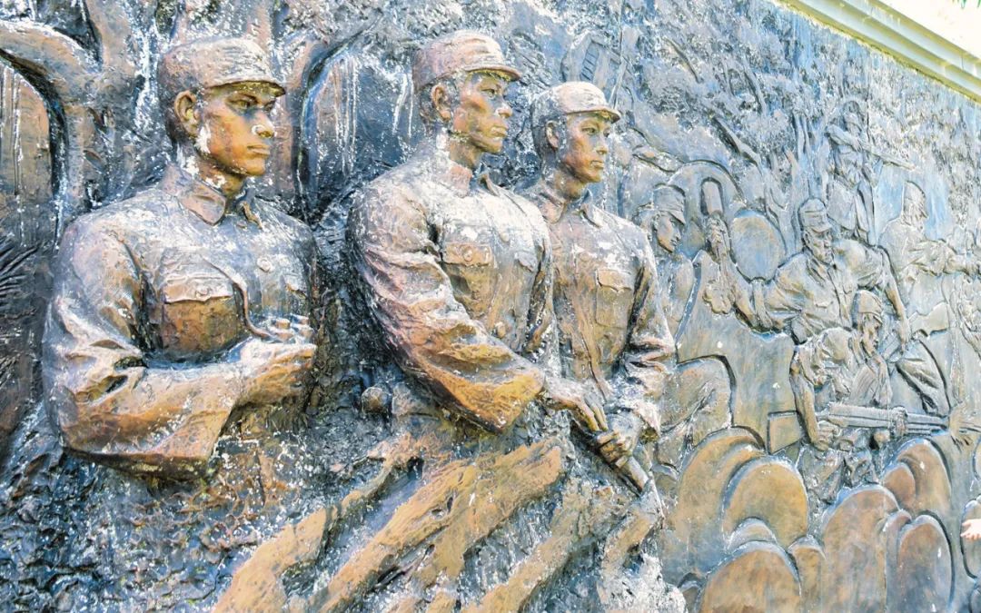 海口市琼山区三门坡镇大水革命烈士纪念园内大水战斗场景浮雕作品。图源:海口日报