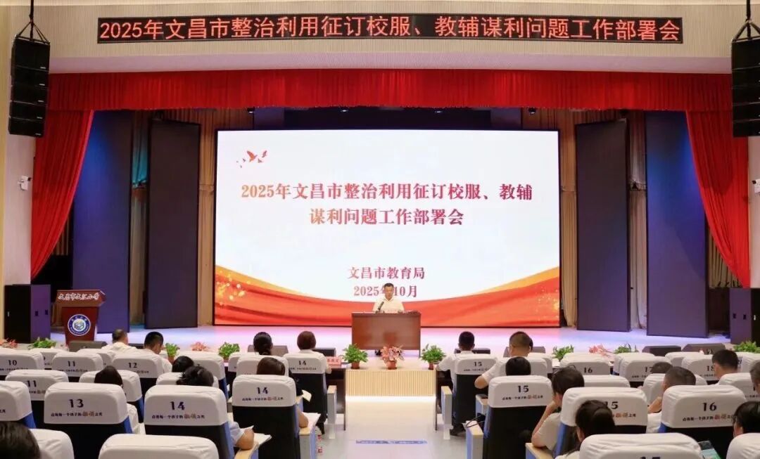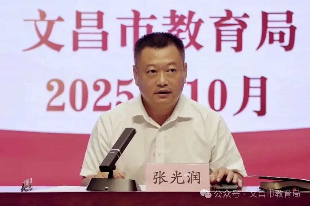 10月16日下午,市教育局组织召开2025年文昌市整治利用征订校服、教辅谋利问题工作部署会。会议由市教育局局长张光润主持。市教育局副局长王康宁、市教育局相关室(办)负责人以及全市各中小学校长参加会议。