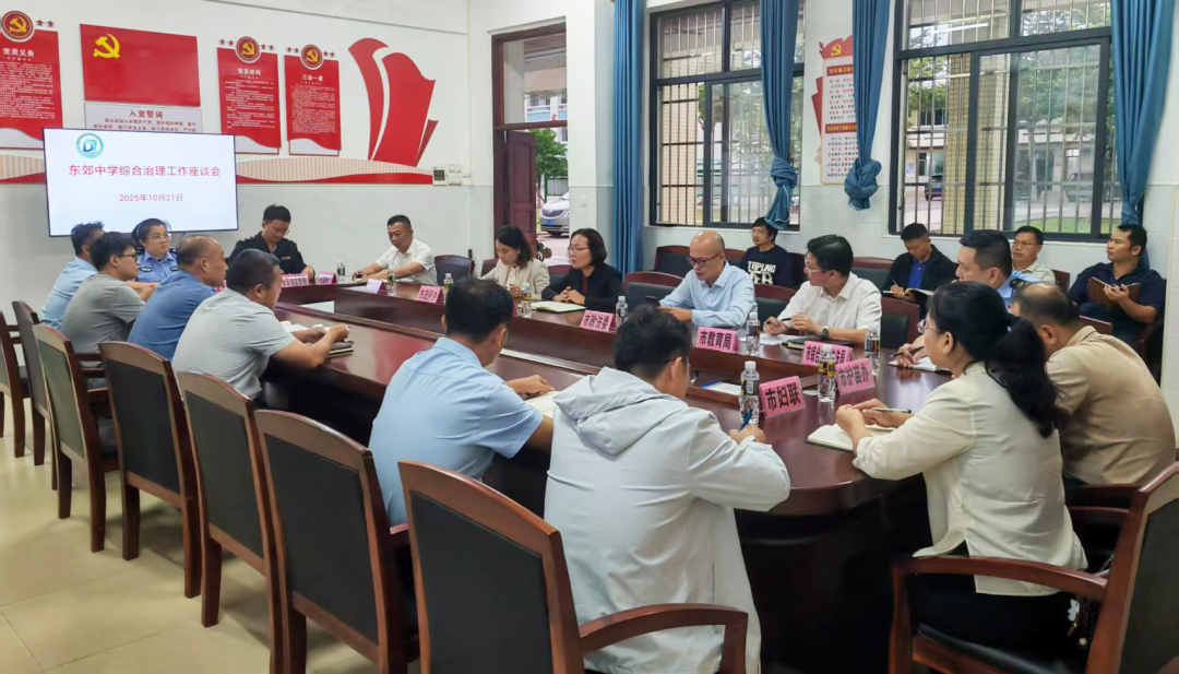 10月21日,市政府副市长韩亮率队赴东郊中学开展学校及校园周边环境综合治理工作专项调研并主持召开座谈会。