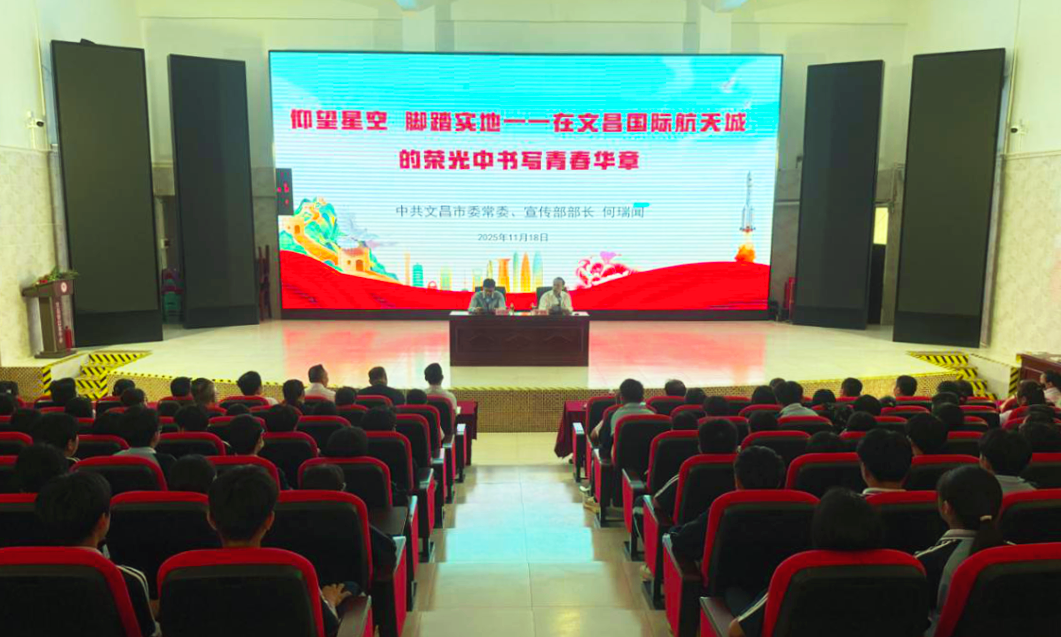 11月18日,市委常委、宣传部部长何瑞闻走进文昌市第三中学,以《仰望星空,脚踏实地——在文昌国际航天城的荣光中书写青春华章》为题,为全校师生带来一堂主题鲜明、内涵深刻的专题思政课。活动由市政府教育总督学黄有宝主持。