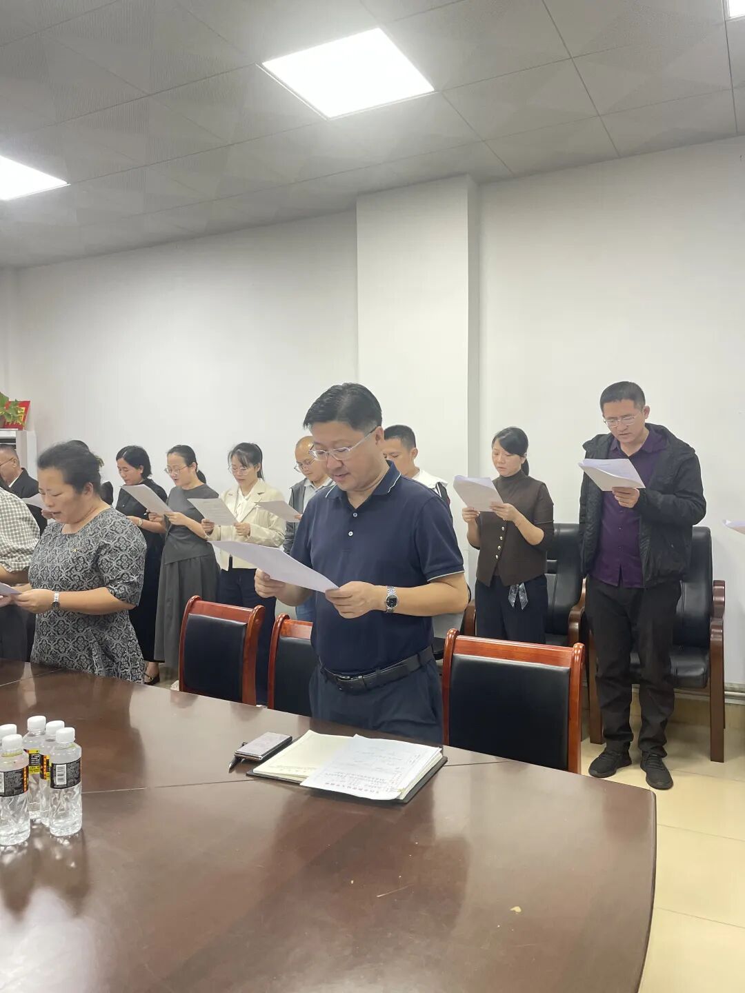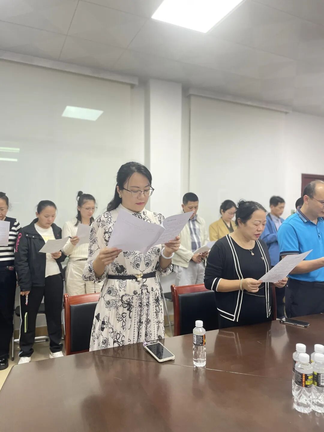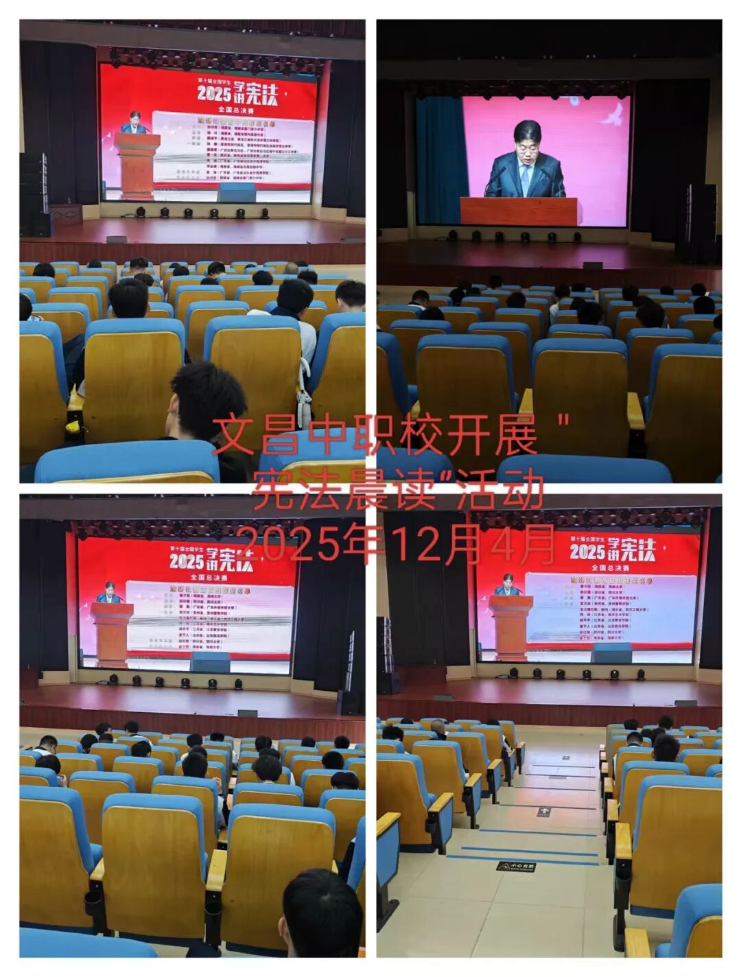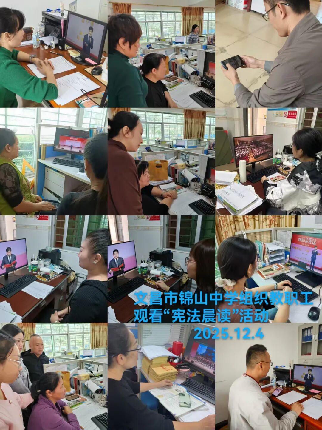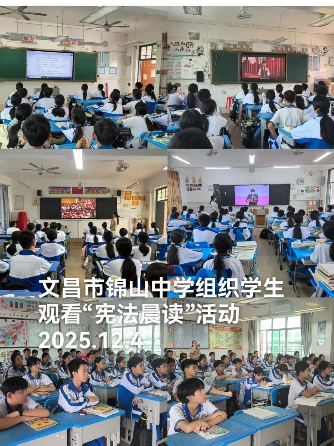 直播过程中,现场庄重肃穆的氛围深深感染了每一位观看者。师生们全程凝神注视,深刻感受宪法的崇高地位与庄严权威,进一步领会宪法作为国家根本法,在政治、经济和社会生活中发挥的根本性、全局性作用。随后,全体人员与直播同步,铿锵有力地诵读了宪法部分条款。声音整齐洪亮,情感真挚饱满,充分展现出对宪法的衷心尊崇与坚定维护。
