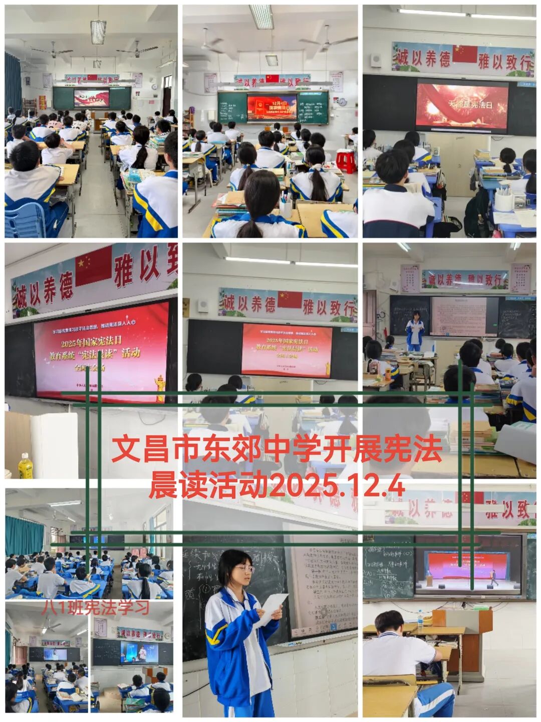 在第十二个“国家宪法日”到来之际,2025年国家宪法日教育系统“宪法晨读”活动在北京主会场庄严启动。活动通过全国青少年普法网向各省、自治区、直辖市及新疆生产建设兵团中小学进行实时同步直播。我市教育系统积极响应,认真组织广大师生职工集中观看直播,同步开展宪法学习与宣传活动。