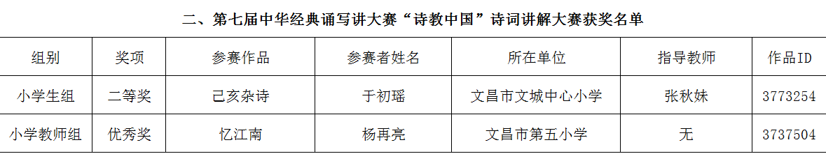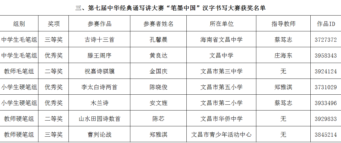 转发教育部语用司关于公布第七届中华经典