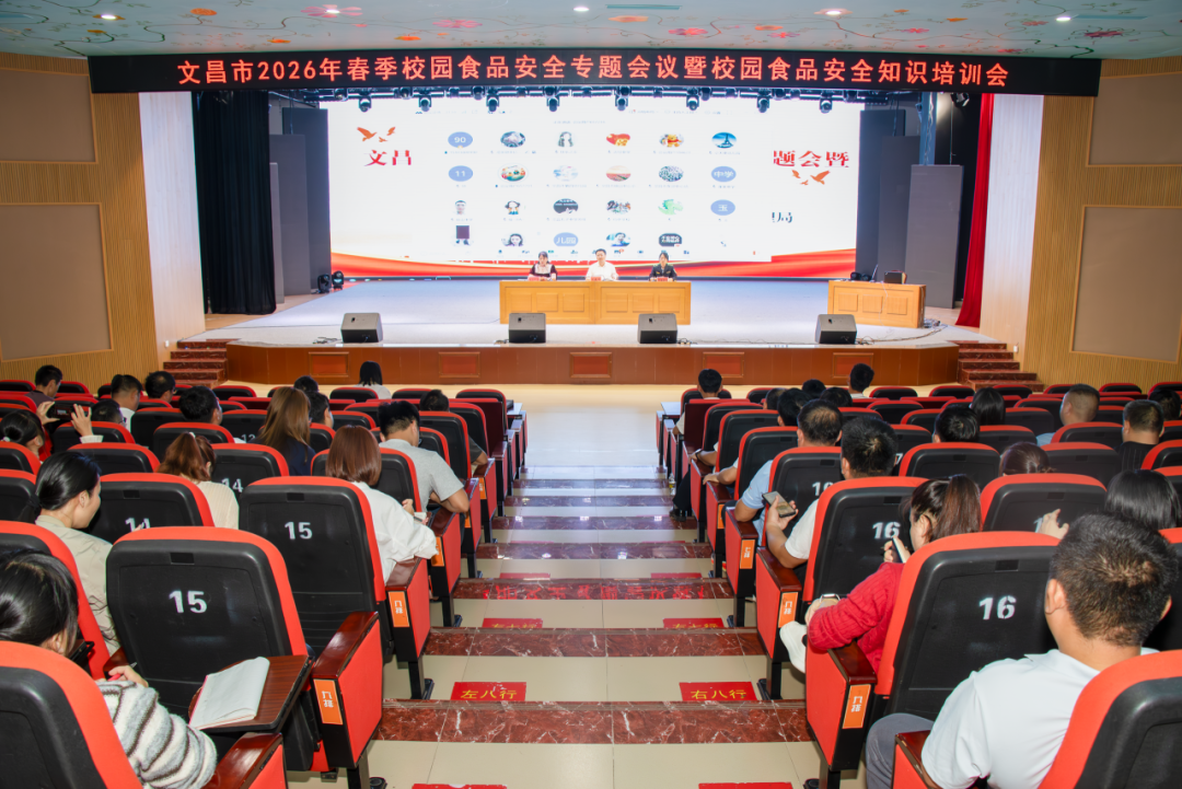 为全面提升食堂从业人员专业素养、操作规范与安全责任意识,切实保障广大师生饮食安全,2月28日,文昌市2026年春季校园食品安全专题会议暨校园食品安全知识培训会在市青少年活动中心小蓓蕾剧场召开。市教育局副局长朱晓峰出席会议。市教育局、市市场监管局相关室(办)负责人,全市各设有食堂的中小学、幼儿园(含公办、民办)、市中职校分管食堂的校(园)领导、食品安全总监(食品安全员),学校食堂委托经营方负责人以及海南外国语职业学院食品安全总监(食品安全员)参加会议。会议由市教育局体卫艺室主任林娟娟主持。