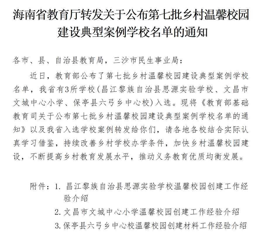 乡村温馨校园建设是推动义务教育优质均衡发展、改善乡村学校办学条件的重要举措。文城中心小学的入选,既是学校全体师生共同努力的成果,也是我市乡村教育高质量发展的生动体现。希望文城中心小学珍惜荣誉、再接再厉,充分发挥典型示范作用,持续深化温馨校园建设内涵。全市各学校要认真学习借鉴其经验做法,结合自身实际,加快推进温馨校园建设,不断提升办学品质,为办好人民满意的教育、推动我市教育事业高质量发展作出新的更大贡献。