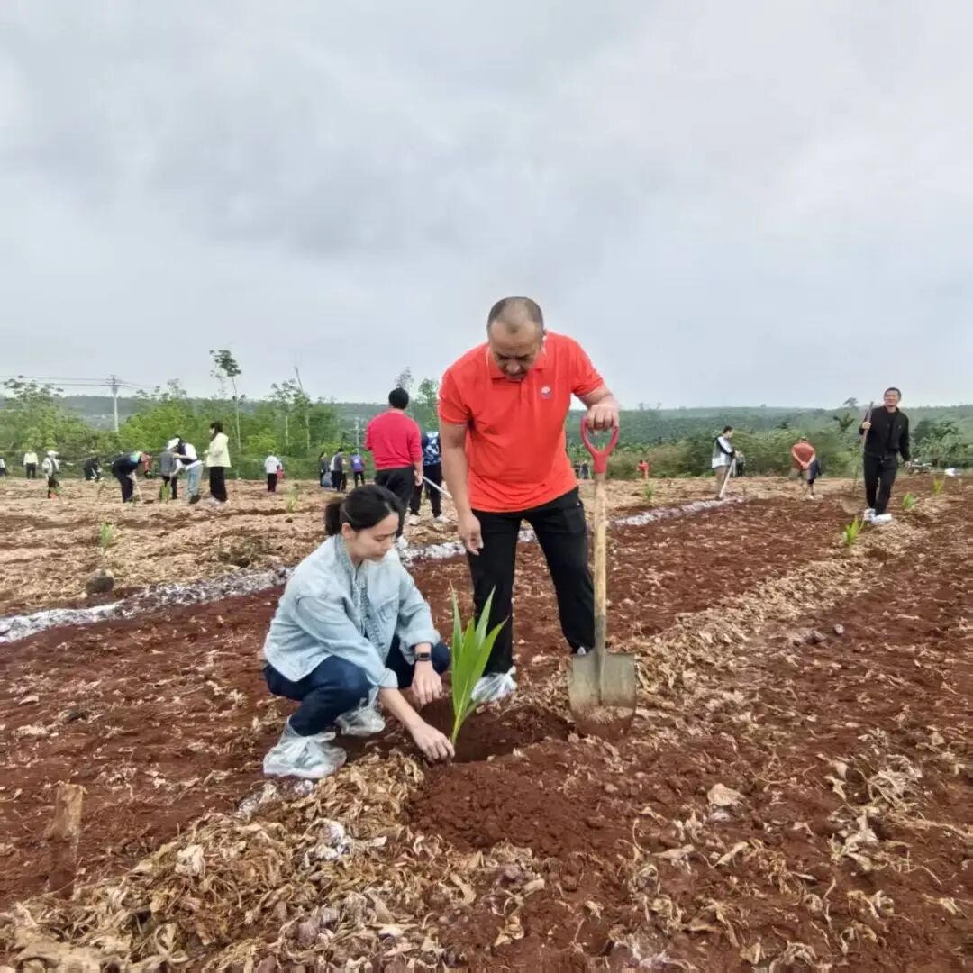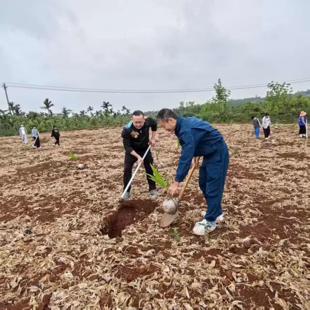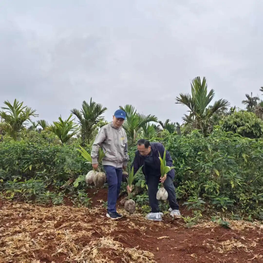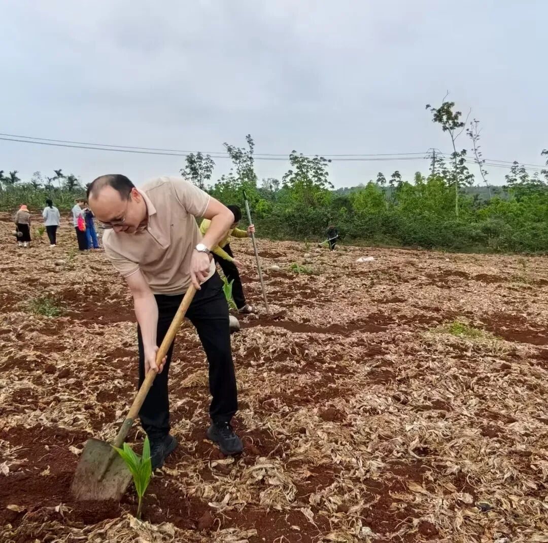 植树现场气氛热烈、井然有序。党员同志们精神振奋、分工协作,严格按照技术规范开展作业,挥锹铲土、扶苗入坑、培土围堰、提水浇灌,每一个环节都认真细致、一丝不苟。大家热情高涨、配合默契,展现出团结协作、奋勇争先的优良作风。经过两个多小时的劳动,一株株椰苗错落有致、迎风挺立,为初春的大地增添了勃勃生机。
