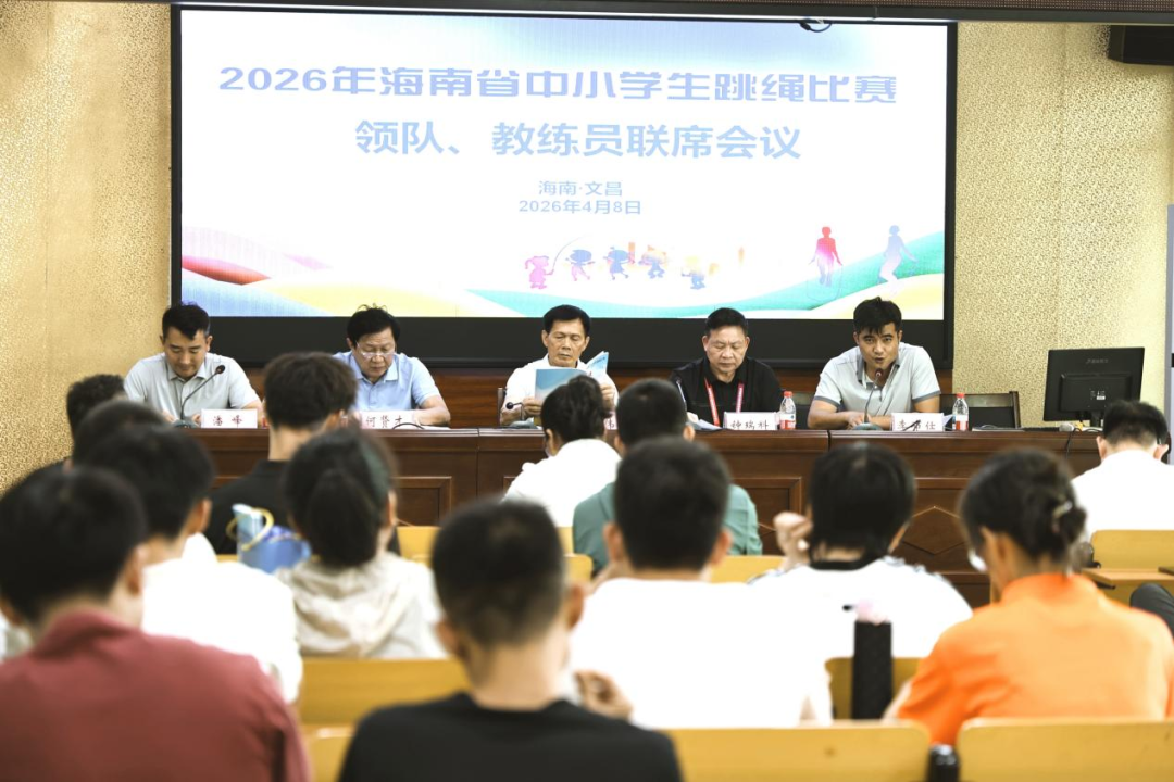 4月8日下午,在文昌市青少年活动中心召开2026年海南省中小学生跳绳比赛领队教练联席会。