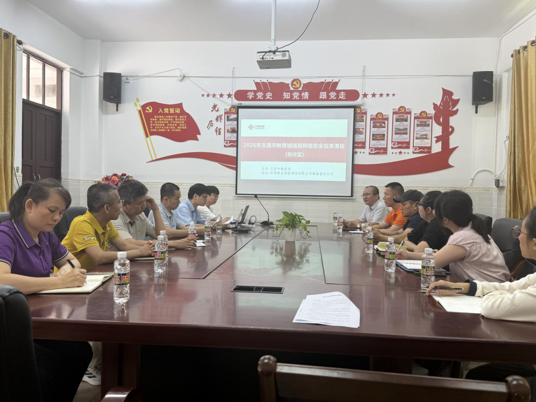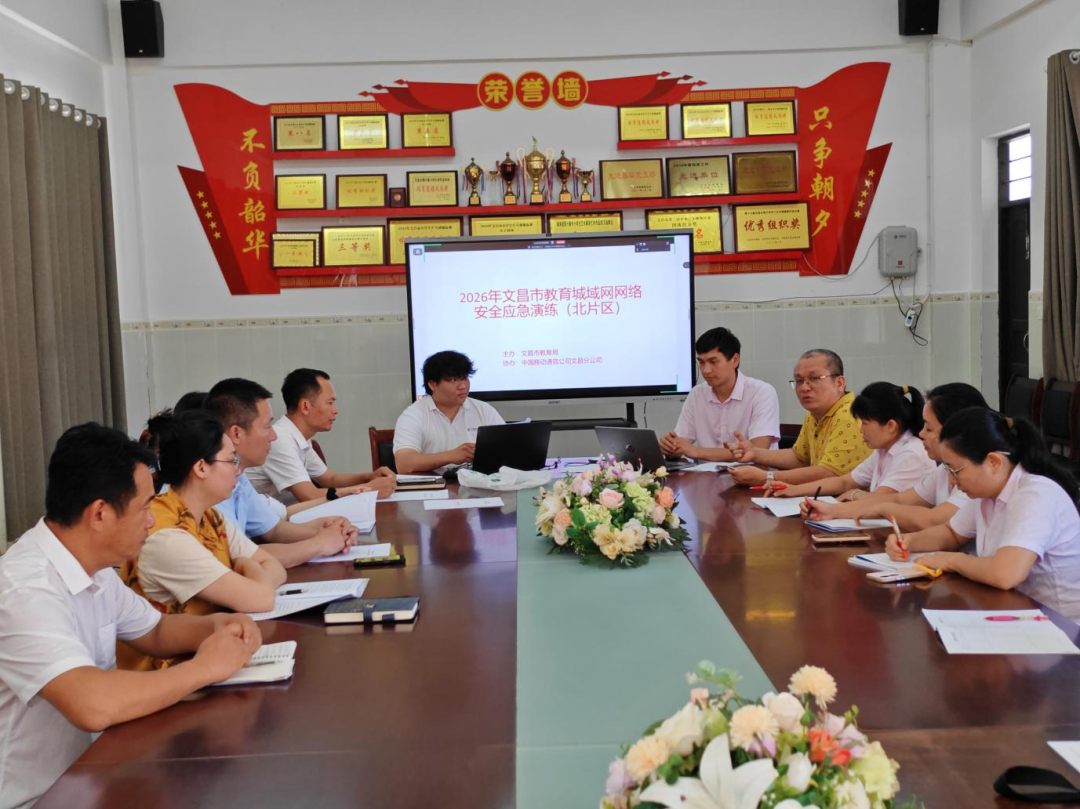 3月30日—4月8日,市教育局联合中国电信、中国移动、中国联通文昌分公司,在文城中心小学、东路中心小学、头苑中心学校组织开展2026年文昌市教育城域网网络安全应急演练。