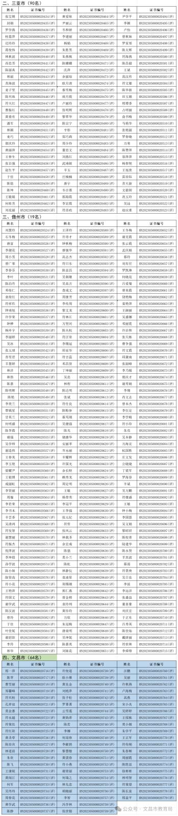 经2023年度海南省中小学教师系列高级专业技术资格评审委员会评审表决通过,并向社会公示无异议,朱海林等1495位教师具备中小学高级教师专业技术资格,现予以公布(名单见附件)。