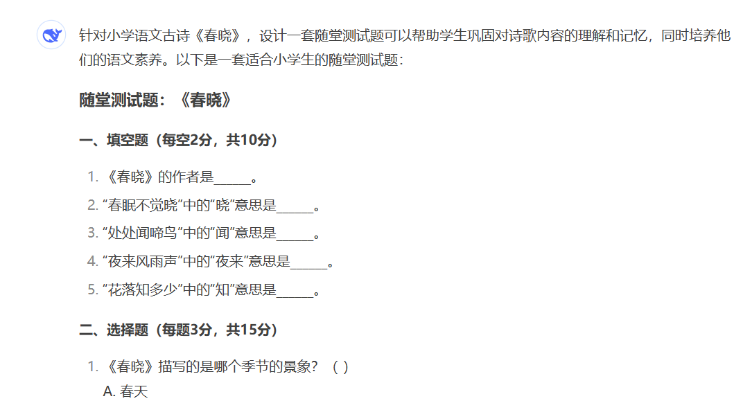 实时互动:在课堂上,你可以用DeepSeek生成随堂测验,实时检测学生的掌握情况。